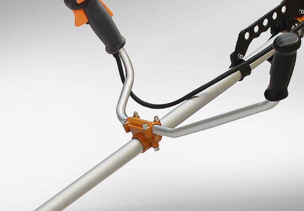 Усиленный кронштейн рукоятки гарантирует высокую прочность и надежность крепления. Асимметричные рукоятки обеспечивают удобный хват и комфортное положение рук во время работы.
