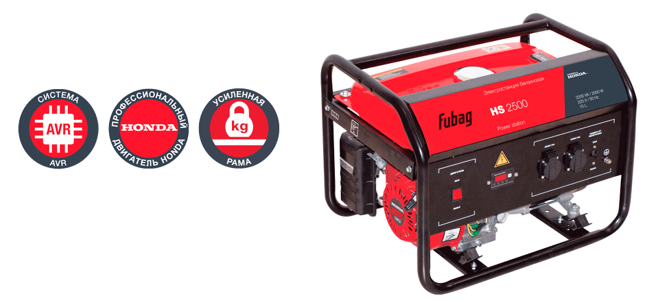 Наклонный металлический козырек над приборной панелью обеспечивает дополнительную защиту элементов панели от неблагоприятных погодных условий.Бензиновый генератор FUBAG HS 2500 в продаже по цене 0 руб. в Интернет-магазине Проф-инструмент с доставкой в Новосибирске. Звоните по телефону +8 (800) 302-10-51.