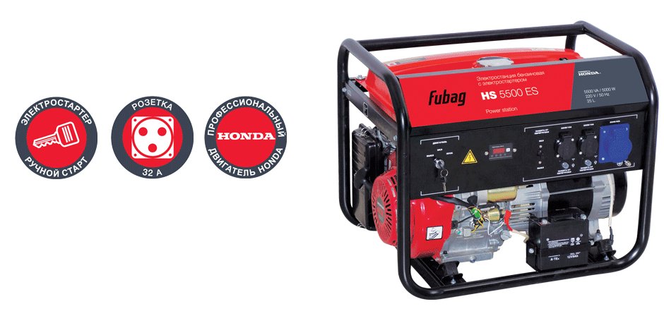 Наклонный металлический козырек над приборной панелью обеспечивает дополнительную защиту элементов панели от неблагоприятных погодных условий.Бензиновый генератор FUBAG HS 5500 ES в продаже по цене 0 руб. в Интернет-магазине Проф-инструмент с доставкой в Новосибирске. Звоните по телефону +8 (800) 302-10-51.