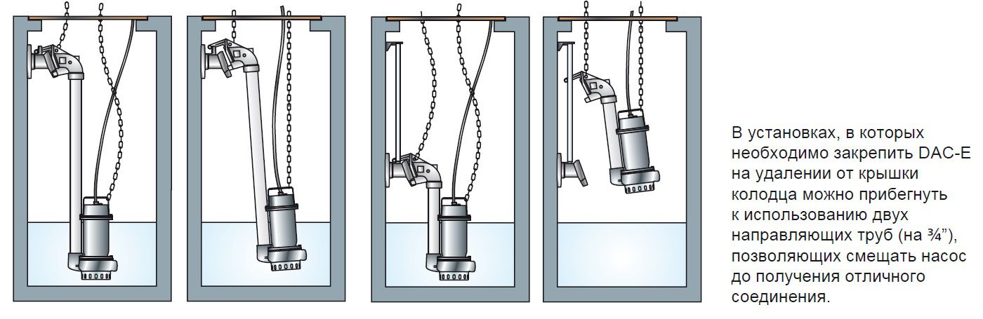 Донное соединительное устройство DAC с вертикальным напорным отверстием позволяет выполнять техническое обслуживание насоса без опорожнения резервуара, а также удерживает всасывающее отверстие насоса на оптимальной высоте. Корпус выполнен из чугуна, уплотнение из резины NBR.