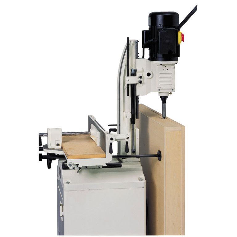 Jet 719AS - точный и удобный в работе долбёжно-пазовальный станок для профессиональной работы. Модель имеет координатный стол с приводами по осям, регулируемыми при помощи вращающихся маховиков. Это позволяет выполнять и продольные, и поперечные пазы, не снимая деталь и не ослабляя прижим, что обеспечивает простоту работы и высокую точность. Особенность модификации 719AS –механизм наклона стола с транспортирной шкалой. Он облегчает изготовление сложных нестандартных деревянных изделий, таких как переплеты многогранных оконных рам (шестигранных, витражных и т.п.).