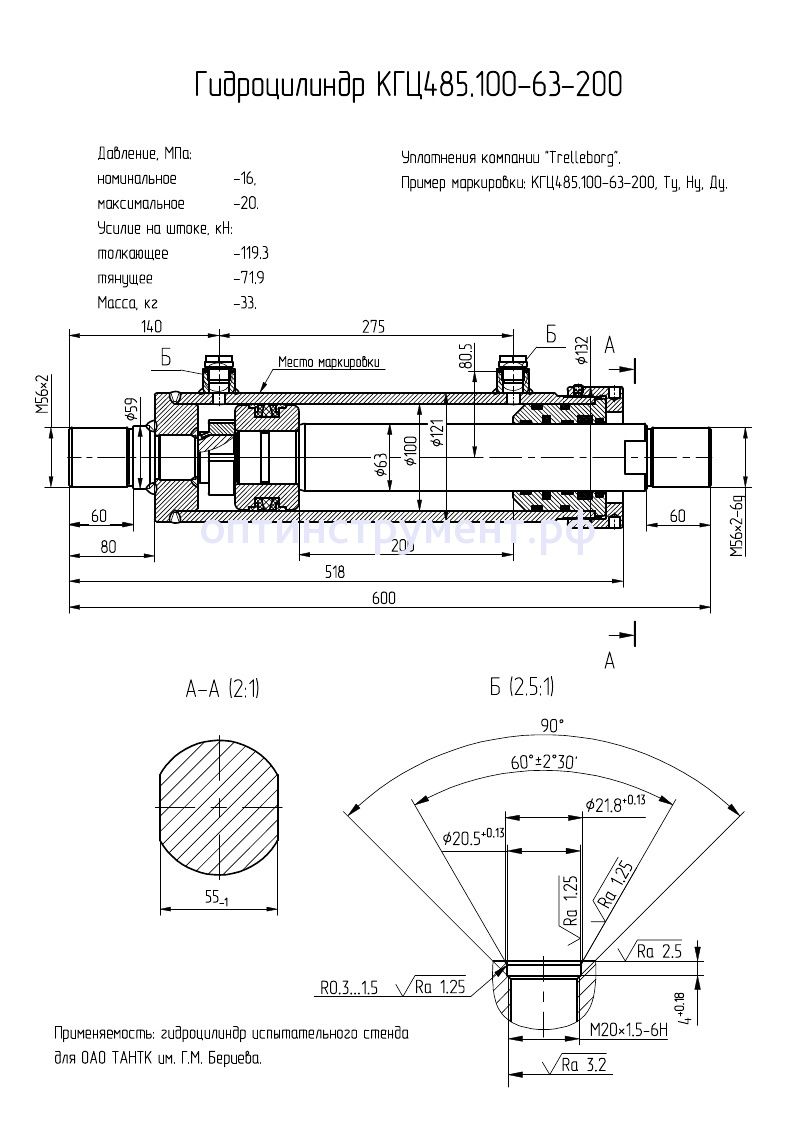 Гидроцилиндр КГЦ 485.100-63-200 в продаже по цене 17 040 руб. в Интернет-магазине Проф-инструмент с доставкой в Новосибирске. Звоните по телефону +8 (800) 302-10-51.