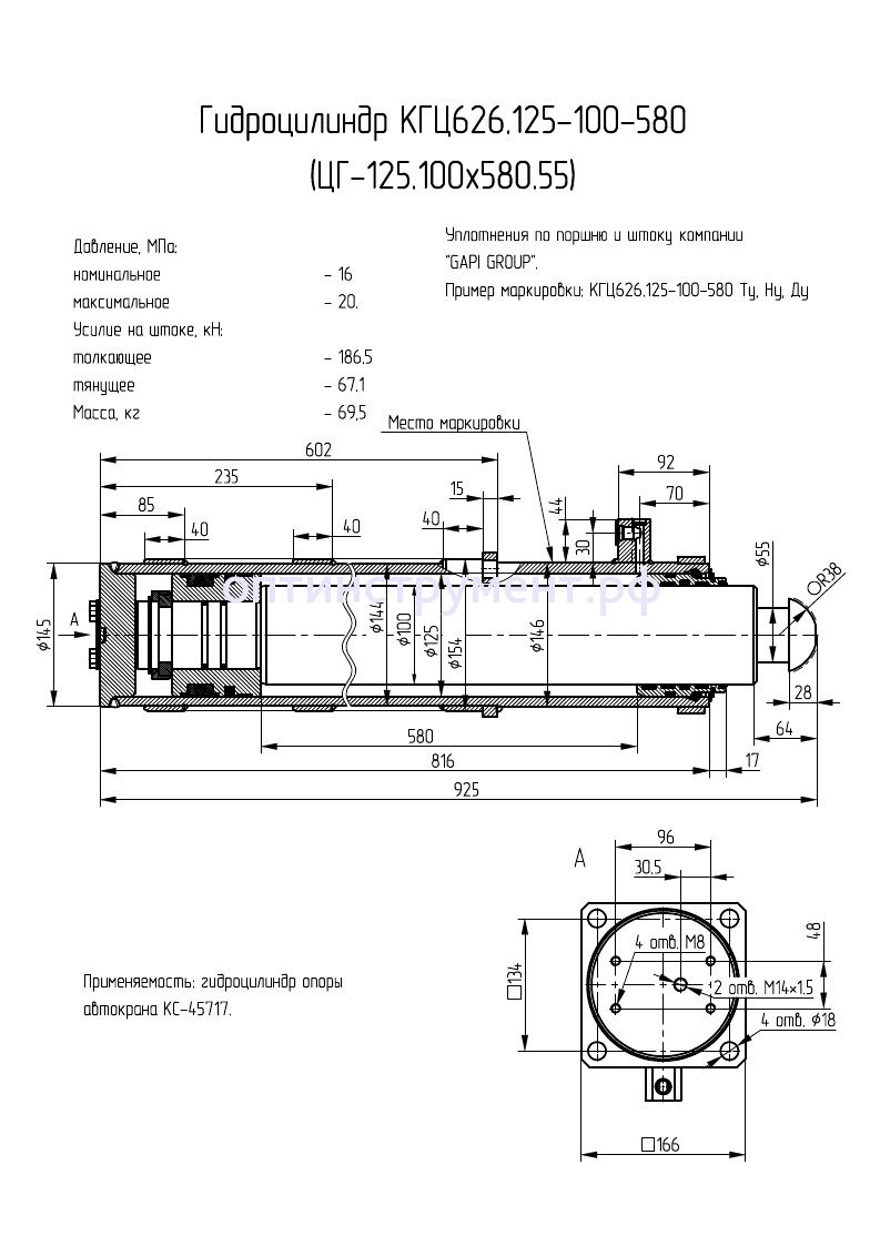 Гидроцилиндр опоры автокрана "КС-45717" КГЦ 626.125-100-580 в продаже по цене 32 880 руб. в Интернет-магазине Проф-инструмент с доставкой в Новосибирске. Звоните по телефону +8 (800) 302-10-51.
