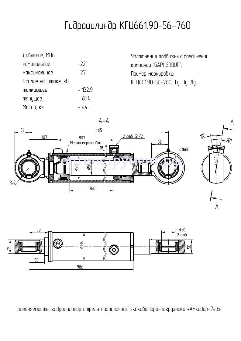 Гидроцилиндр стрелы погрузочной экскаватора-погрузчика «Амкодор-743» КГЦ 661.90-56-760 в продаже по цене 22 440 руб. в Интернет-магазине Проф-инструмент с доставкой в Новосибирске. Звоните по телефону +8 (800) 302-10-51.