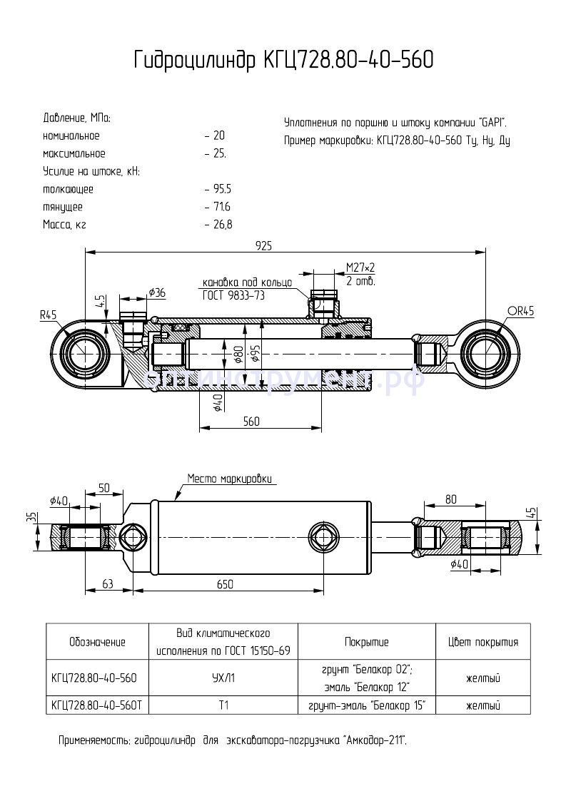 Гидроцилиндр для экскаватора-погрузчика "Амкодор-211" КГЦ 728.80-40-560 в продаже по цене 14 850 руб. в Интернет-магазине Проф-инструмент с доставкой в Новосибирске. Звоните по телефону +8 (800) 302-10-51.