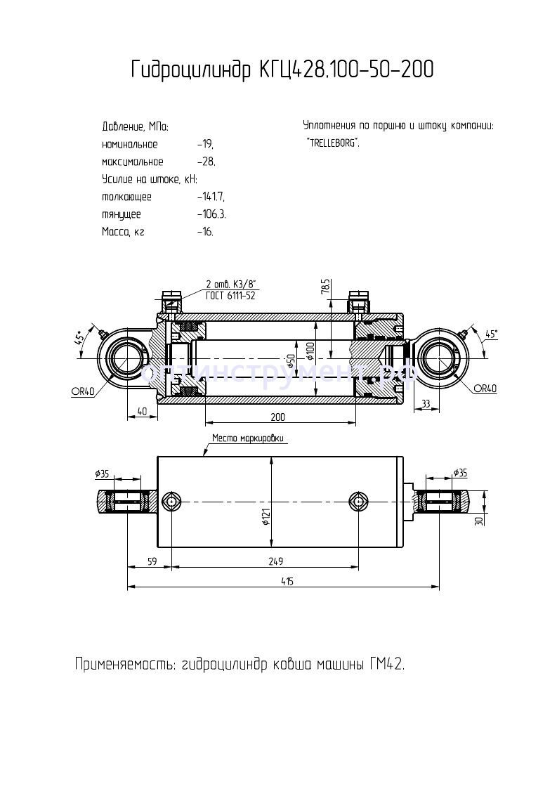Гидроцилиндр ковша машины "ГМ42" КГЦ 428.100-50-200 в продаже по цене 13 350 руб. в Интернет-магазине Проф-инструмент с доставкой в Новосибирске. Звоните по телефону +8 (800) 302-10-51.