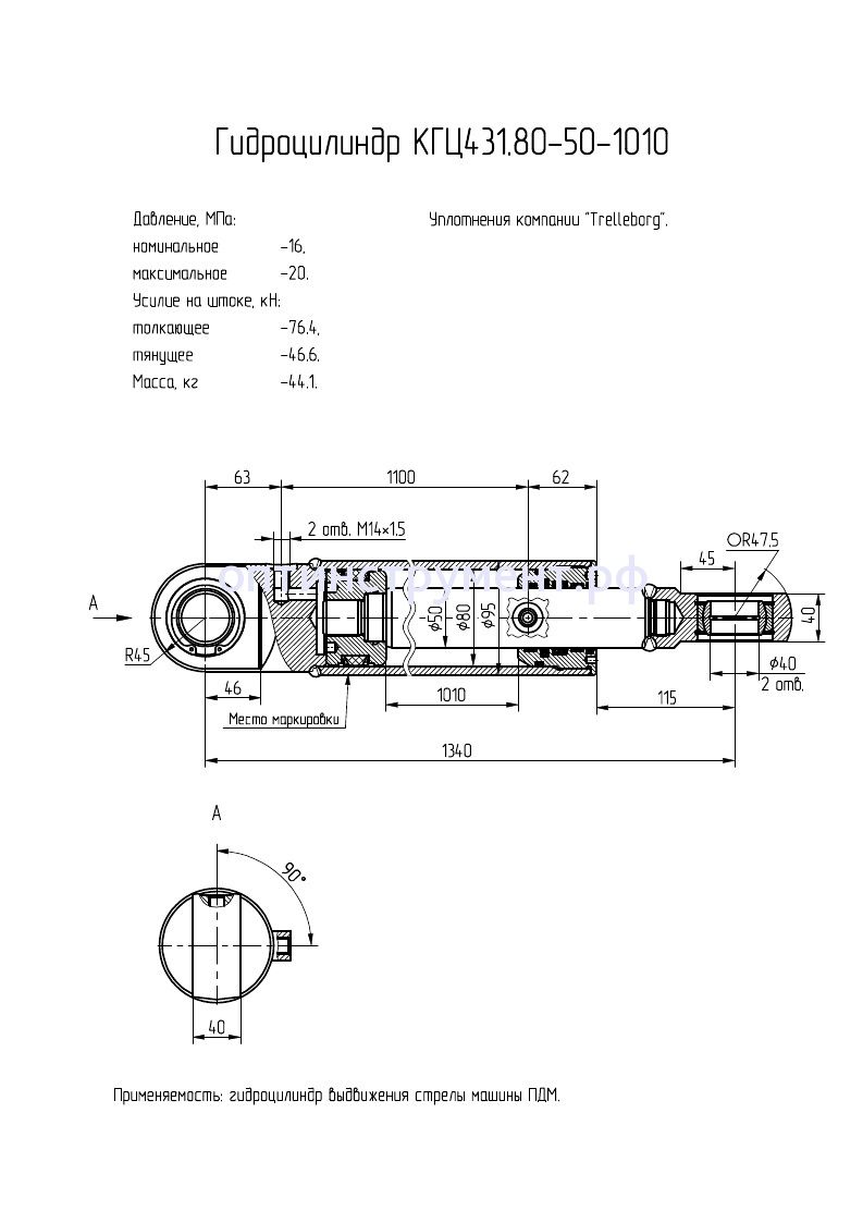 Гидроцилиндр выдвижения стрелы машины "ПДМ" КГЦ 431.80-50-1010 в продаже по цене 19 605 руб. в Интернет-магазине Проф-инструмент с доставкой в Новосибирске. Звоните по телефону +8 (800) 302-10-51.