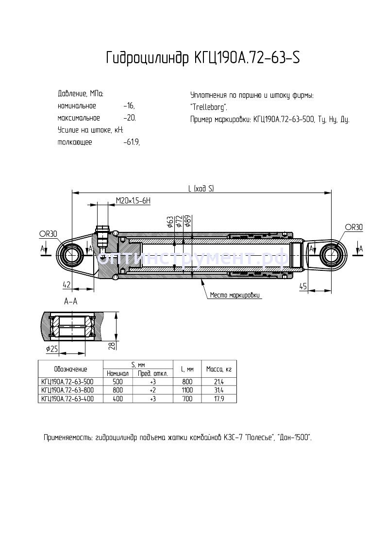 Гидроцилиндр подъема жатки комбайнов КГЦ 190А.72-63-500 в продаже по цене 0 руб. в Интернет-магазине Проф-инструмент с доставкой в Новосибирске. Звоните по телефону +8 (800) 302-10-51.