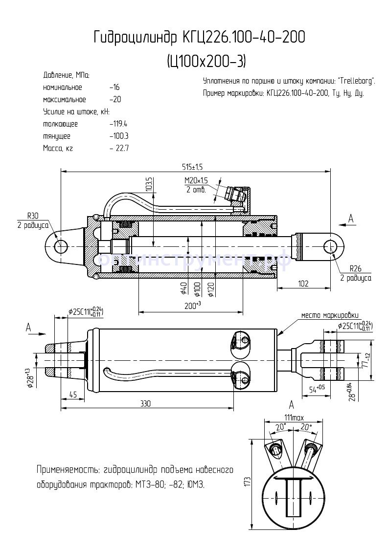Гидроцилиндр задней навески тракторов "МТЗ" КГЦ 226.100-40-200 в продаже по цене 0 руб. в Интернет-магазине Проф-инструмент с доставкой в Новосибирске. Звоните по телефону +8 (800) 302-10-51.