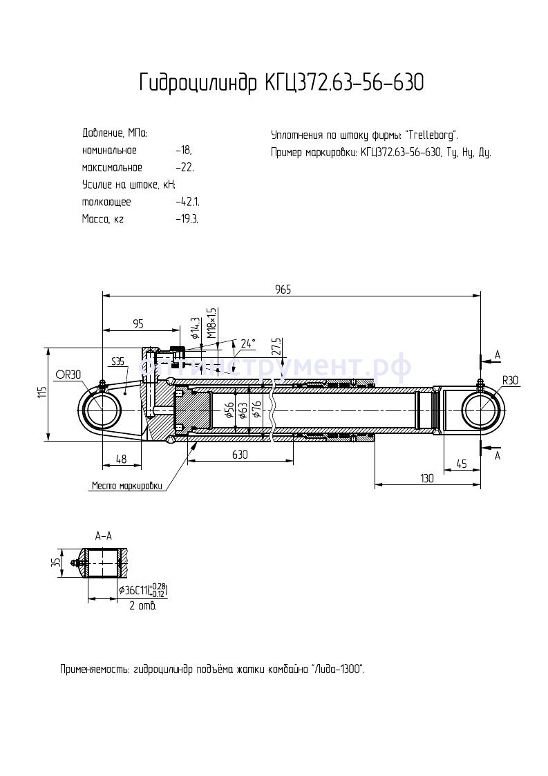 Гидроцилиндр подъёма жатки зерноуборочного комбайна КГЦ 372.63-56-630 в продаже по цене 12 945 руб. в Интернет-магазине Проф-инструмент с доставкой в Новосибирске. Звоните по телефону +8 (800) 302-10-51.