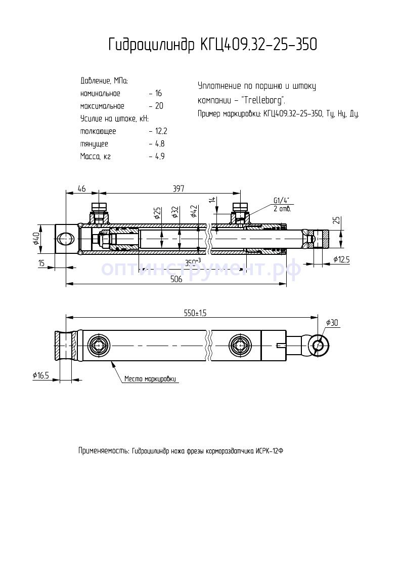 Гидроцилиндр ножа фрезы кормораздатчика "ИСРК-12Ф" КГЦ 409.32-25-350 в продаже по цене 0 руб. в Интернет-магазине Проф-инструмент с доставкой в Новосибирске. Звоните по телефону +8 (800) 302-10-51.