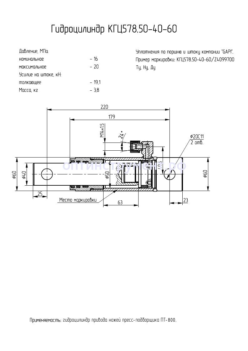 Гидроцилиндр привода ножей пресс-подборщика (ПТ-800) КГЦ 578.50-40-60 в продаже по цене 4 470 руб. в Интернет-магазине Проф-инструмент с доставкой в Новосибирске. Звоните по телефону +8 (800) 302-10-51.