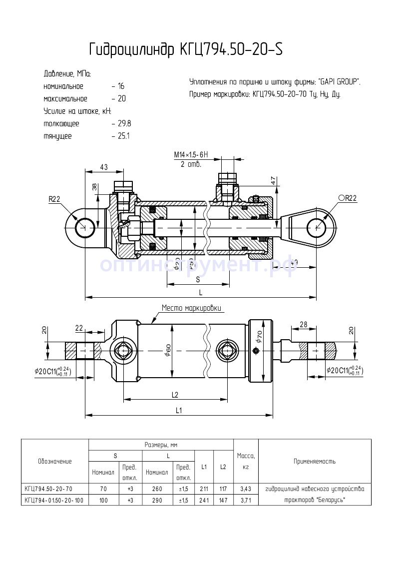 Гидроцилиндр навесного устройства тракторов "Беларусь" (Ц50х70.010) КГЦ 794.50-20-100 в продаже по цене 0 руб. в Интернет-магазине Проф-инструмент с доставкой в Новосибирске. Звоните по телефону +8 (800) 302-10-51.