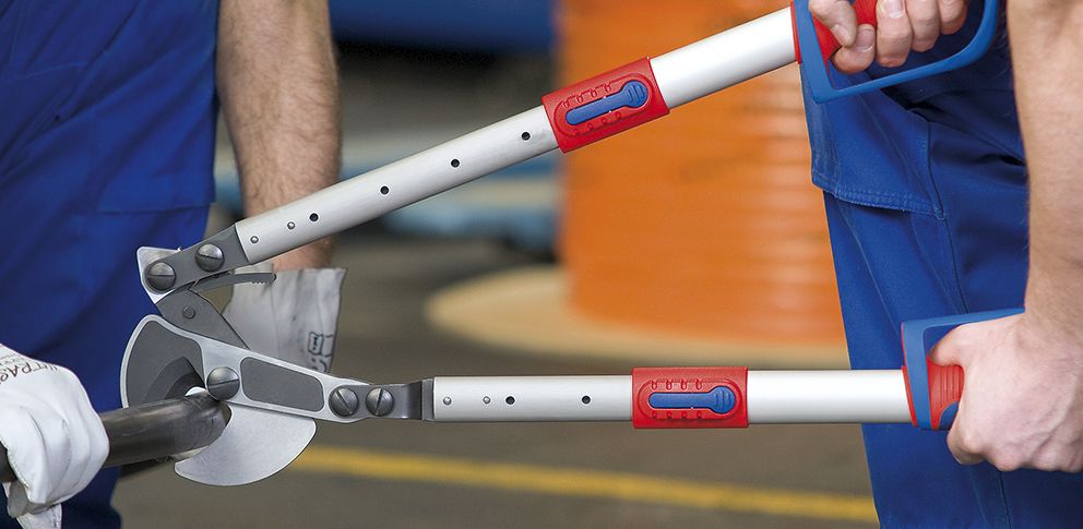 - для диаметров кабеля до 38 мм, угол ручек регулируется для настройки оптимального расстояния между ручками, также пригодны для работы в стесненных условиях;