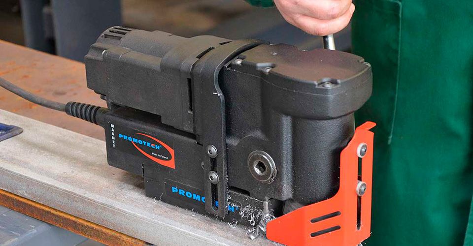 Основной рабочий инструмент – 19 мм кольцевые фрезы под разъём Weldon. Имеет съёмную рукоятку подачи с трещоткой, которая может устанавливаться с обеих сторон. Магнитная сверлильная машина имеет электромагнитное основание с увеличенной силой притяжения к неровным и шероховатым поверхностям (система MFSC), что значительно упрощает работу, тем самым обеспечивая лёгкость и комфортность сверления в самых различных плоскостях. Встроенный защитный кожух. Износостойкие трубчатые направляющие обеспечивают длительный срок службы станка.