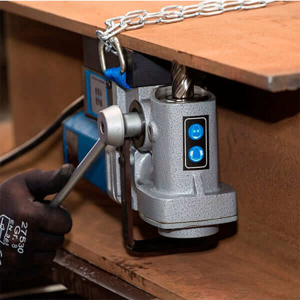 Благодаря конической угловой передаче под углом 90 градусов — идеальный магнитный сверлильный станок для работы в ограниченных пространствах.