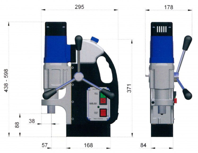 Магнитный сверлильный станок MAB 455 SB с поворотным механизмом, который дает возможность поворота магнитного основания до 20º относительно вертикальной оси в обе стороны и до 15 мм по длине для точного позиционирования. МАВ 455 – классическая модель сверлильного станка на магнитном основании для корончатого сверления с возможностью выполнения отверстий диаметром до 40 мм.