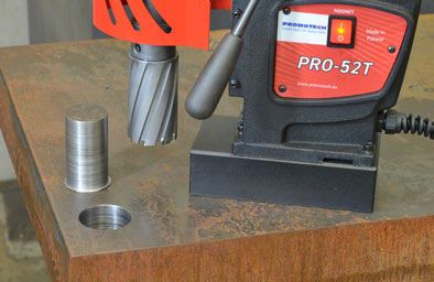 Сверлильный станок на магнитном основании PRO 52T относится к машинам средней мощности, но благодаря двухскоростному редуктору и изменяемому направлению вращения шпинделя является универсальным промышленным сверлильным станком. Дополнительная оснастка позволяет использовать на данном станке различный режущий инструмент: кольцевые сверла из быстрорежущей стали (HSS), корончатые фрезы с твердосплавными пластинами (ТСТ), классические спиральные сверла, метчики и зенкера. При этом глубина сверления достигает 75 мм, диаметр – 50 мм, а размер резьбы до М20.
