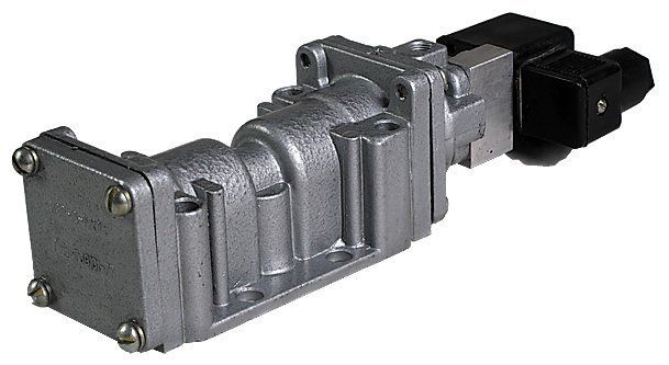 Клапан представляет собой двухпозиционный пятилинейный распределитель с электропневматическим управлением. Возможно изготовление клапанов на другие напряжения питания.