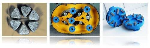 Для оптимальной работы мозаично-шлифовальной машины, ее траверсы вращаются в противоположные стороны, а резиновые амортизаторы обеспечивают равномерный износ шлифовальных сегментов и плавный ход машины. Средняя стойкость абразивных камней составляет 12 квадратных метров, для алмазных фрез ресурс в среднем составляет 150 квадратных метров. Алмазные шлифовальные фрезы имеют в разы больший ресурс службы и позволяют получать лучшее качественное поверхности, по сравнению с абразивными камнями.
