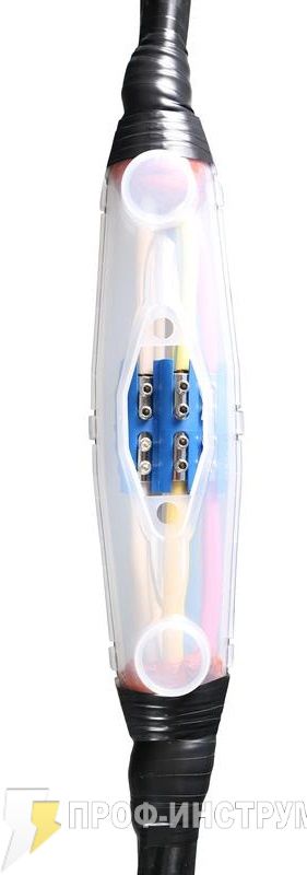 - Прозрачный корпус муфты обеспечивает визуальный контроль за равномерным заполнением всех междужильных пустот