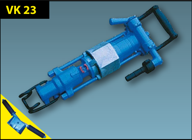 Промышленный пневматический перфоратор Permon VK 23 предназначен для работ в горной промышленности и в строительстве. Вес перфоратора 23,5 кг, расход воздуха 4 куб.метра в минуту. Пневматический перфоратор Permon VK 23 в основном применяется для бурения наклонных, вертикальных и горизонтальных отверстий (шпуров) в горных породах и других твердых материалах - неармированный бетон, гранит.