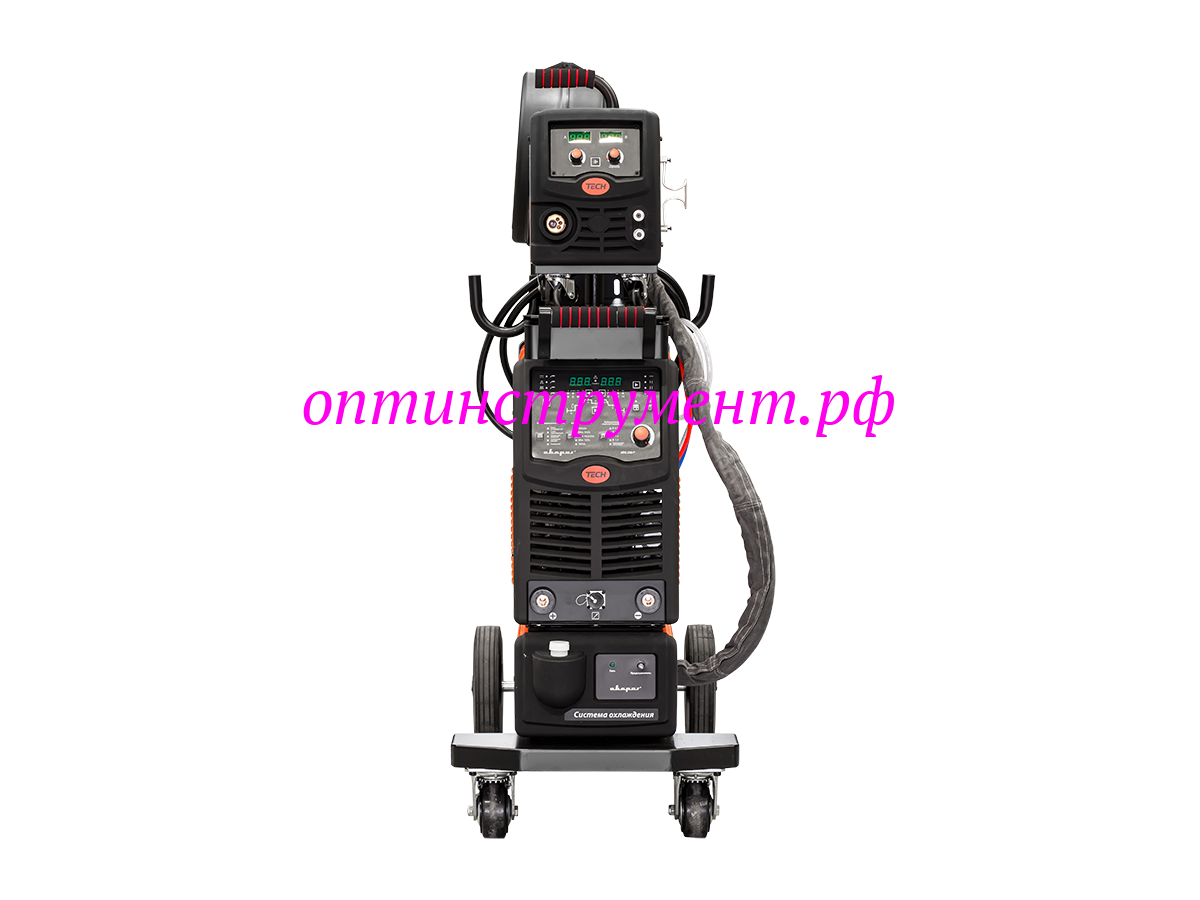- Блочная система на прочной тележке: источник сварочного тока, подающее устройство и теплообменник .