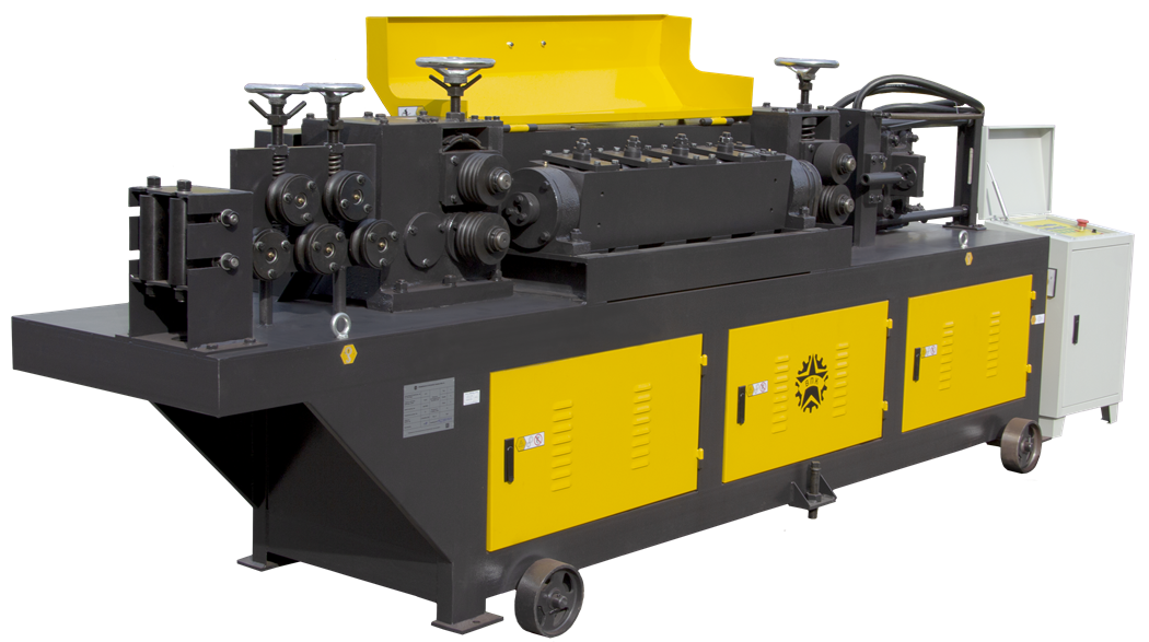 Арматура затягивается в станок роликами подачи. Проходя через выпрямительный механизм, она выпрямляется. Резку осуществляет нож при помощи гидропривода.