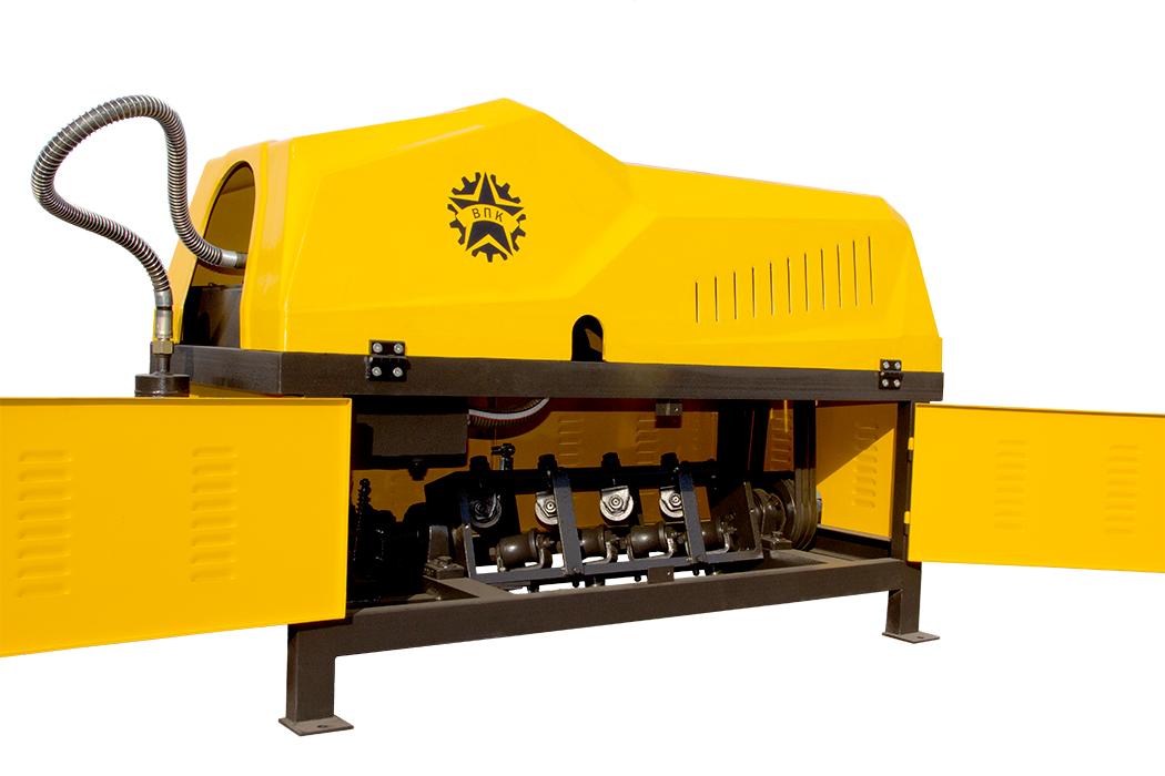 На станке ПРО-14 Компакт электродвигатель через шкив и ремни передает вращение на выпрямляющую раму. Рама одновременно выполняет функции подачи и выпрямления арматуры. Выпрямление происходит за счет давления обкатных роликов на арматуру. Резку осуществляет нож при помощи гидропривода, давление в гидроприводе создается масляным насосом.