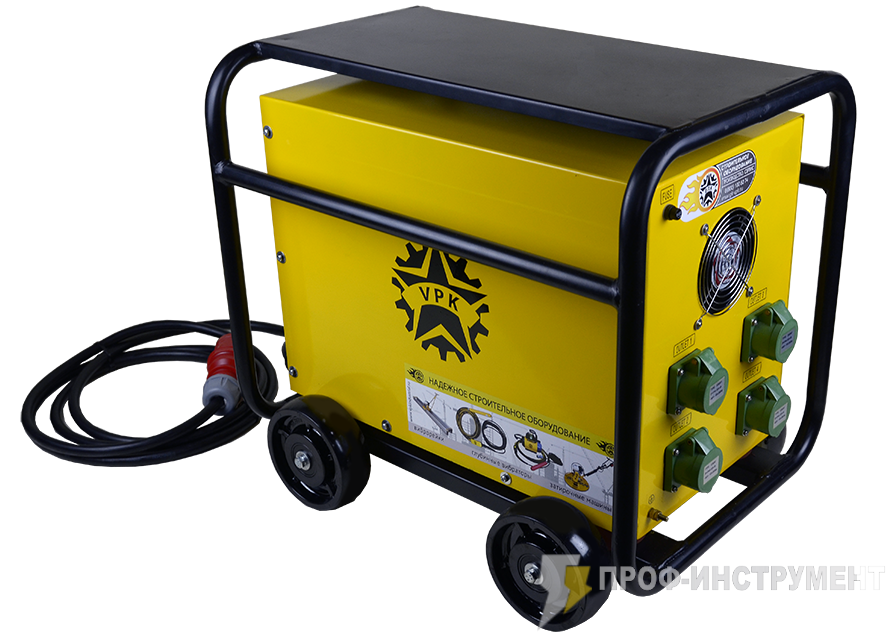 Преобразователь частоты VPK-ECV80T предназначен для подключения высокочастотного глубинного вибратора(ов). Выполняет роль понижающего трансформатора до 48В и повышает частоту тока с 50 Гц до 200 Гц ,что позволяет вибратору получить высокую частоту колебаний и как следствие огромную центробежную силу. Это самая мощная модель серии преобразователей VPK.