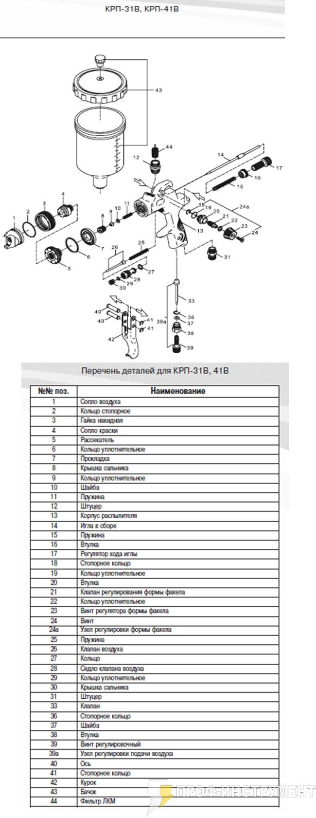 | 2 | поз. 4; КРП- 41В,41Н, сопло краски Ф 1,3мм | 1 |