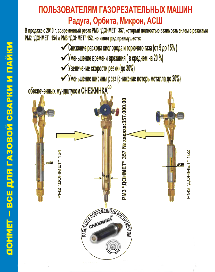 Газовый машинный резак РМ3 Донмет 357 в продаже по цене 0 руб. в Интернет-магазине Проф-инструмент с доставкой в Новосибирске. Звоните по телефону +8 (800) 302-10-51.