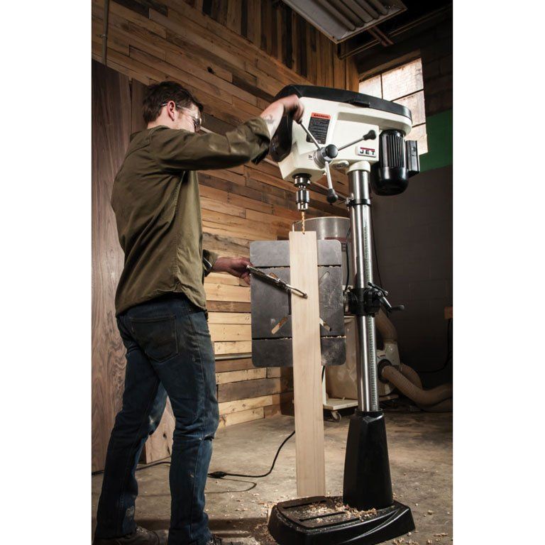 Jet JDP-17 — сверлильный станок, основная особенность которого в том, что он спроектирован специально для деревообработки. Его конструкция не исключает сверления металла, но имеет усовершенствования, важные в столярном и плотницком деле, что делает станок по-настоящему универсальным.