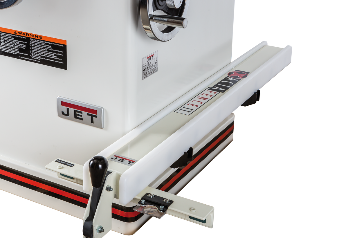 Основные особенности JTAS-12DX, кроме очень мощного мотора, заключаются в глубокой проработке всех нюансов, влияющих на удобство и точность работы. Так, по оценке профессионалов, регулировка высоты и наклона пильного модуля очень точная и плавная. Расклинивающий нож не только опускается вслед за диском, но и легко поддается точной регулировке: для этого достаточно ослабить один эксцентриковый зажим, доступ к которому открывается с верхней стороны стола. Замена диска тоже производится «сверху», причем для блокировки вала предусмотрен специальный механизм. Сама поверхность стола и расширителей (входят в комплект поставки) гладко отшлифована и имеет два Т-образных паза.