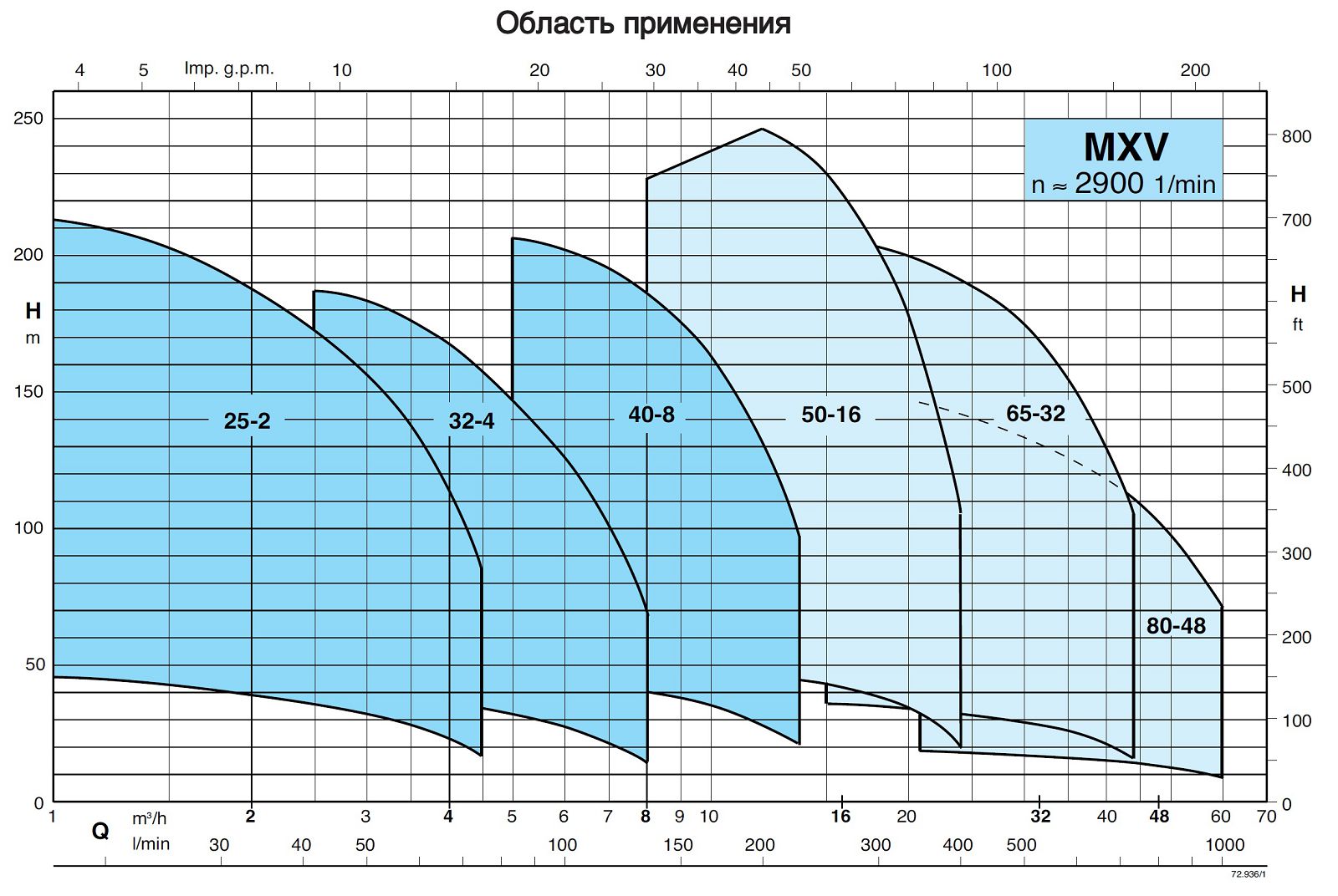 Насосные агрегаты MXV - центробежные многоступенчатые типа "IN - LINE". Проточная часть насоса, рабочие колеса и присоединительные фланцы выполнены из нержавеющей стали.